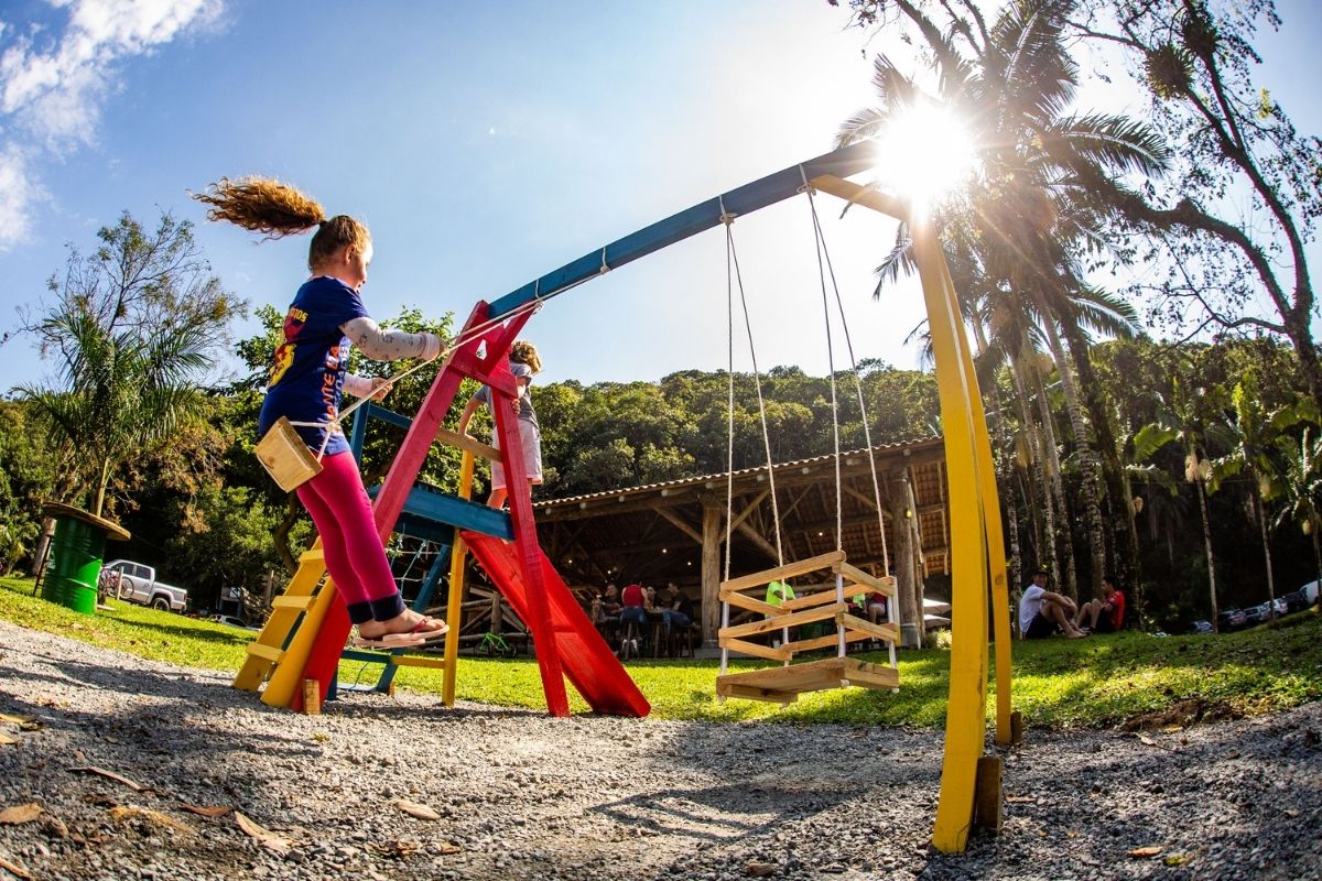 A família Brummer abriu seu Sítio ao público para que você e sua família possam ter lazer e diversão. Temos mais de 100 mil metros quadrados para você conhecer, a pista de mountain bike tem 4 kms entre a mata e a área aberta, além dos 6 lagos para pesca esportiva. O sítio é um lugar agradável para você caminhar, trazer seu animal de estimação, bater fotos, se balançar nas árvores, para as crianças brincarem no parquinho e subirem nas árvores enfim, diversão garantida! Nosso restaurante oferece um cardápio variado com muitas delícias. Atendemos ao longo de todo o dia, fizemos seu pedido na hora para que você possa almoçar ou fazer um lanche sem se preocupar com a hora! Tudo aqui é feito com amor, da nossa família para a sua.